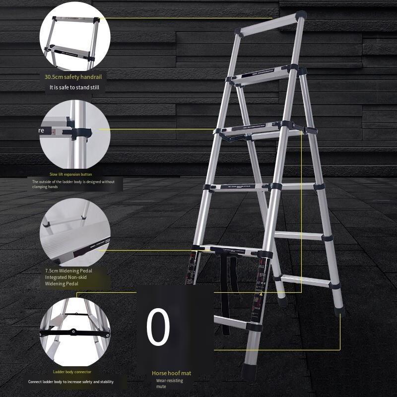 Telescopic Ladder, Folding Herringbone Ladder, Multi-functional Aluminum Alloy Engineering Ladder, Thickened Five Step Lifting And Climbing Mobile Stairs