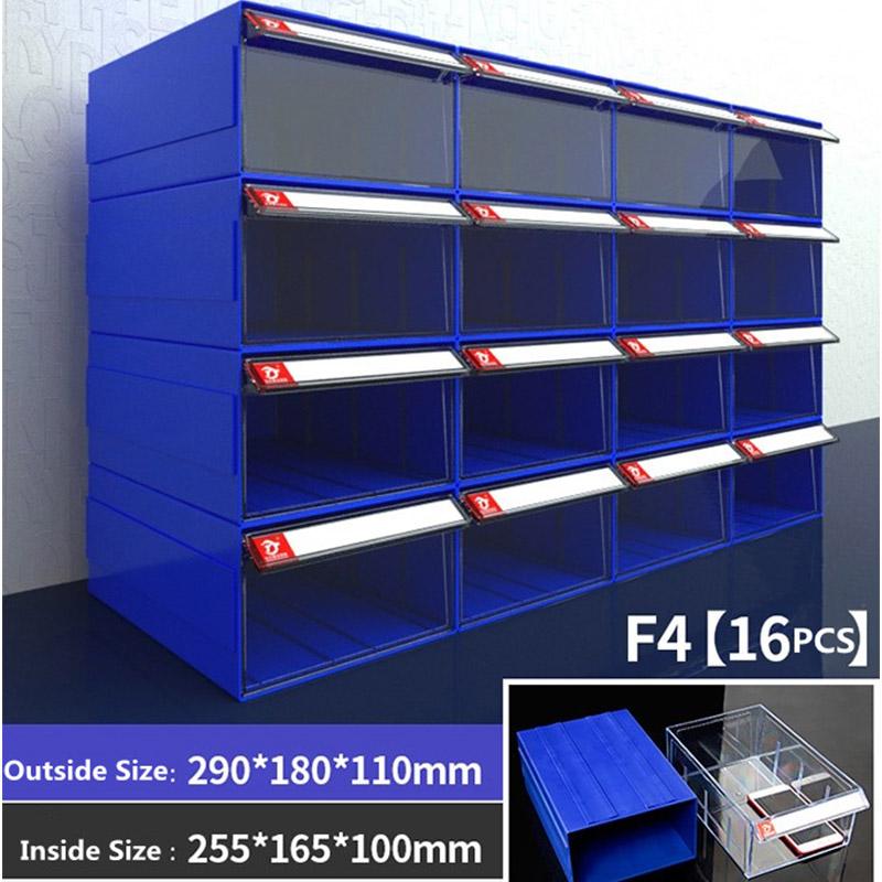 Thickened Parts Box Parts Box Small Drawer Type Box Drawer Cabinet Sundry Tool Cabinet F4 # Default Blue Transparent (16 Pieces)