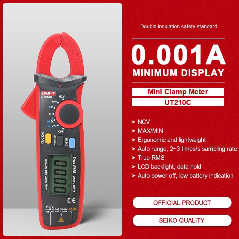 UNI-T Digital Clamp Meter Single AC 200A True RMS High Precision Mini Digital Clamp Multimeter,NCV,Diode Test, LCD Backlight, Temperature Test
