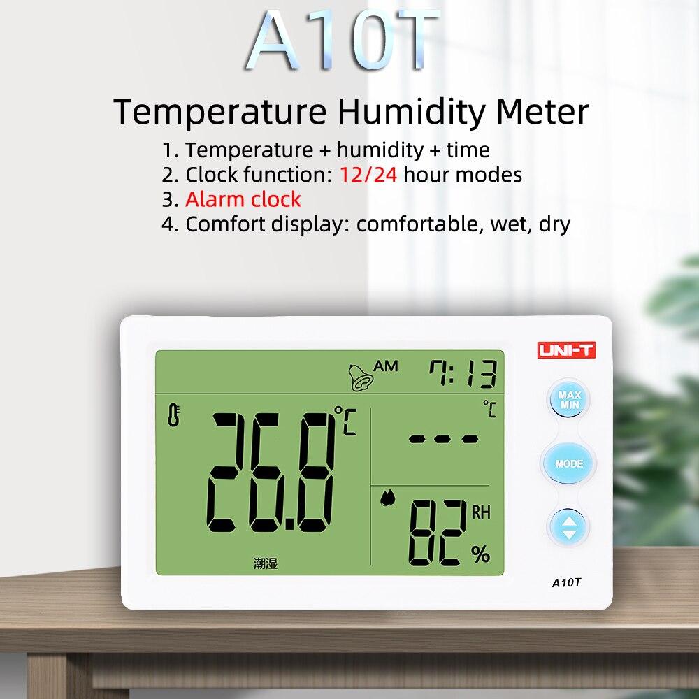 UNI-T Digital LCD Thermometer Humidity Meter Clock Hygrometer of Weather Station Tester with Alarm Clock Function A10T