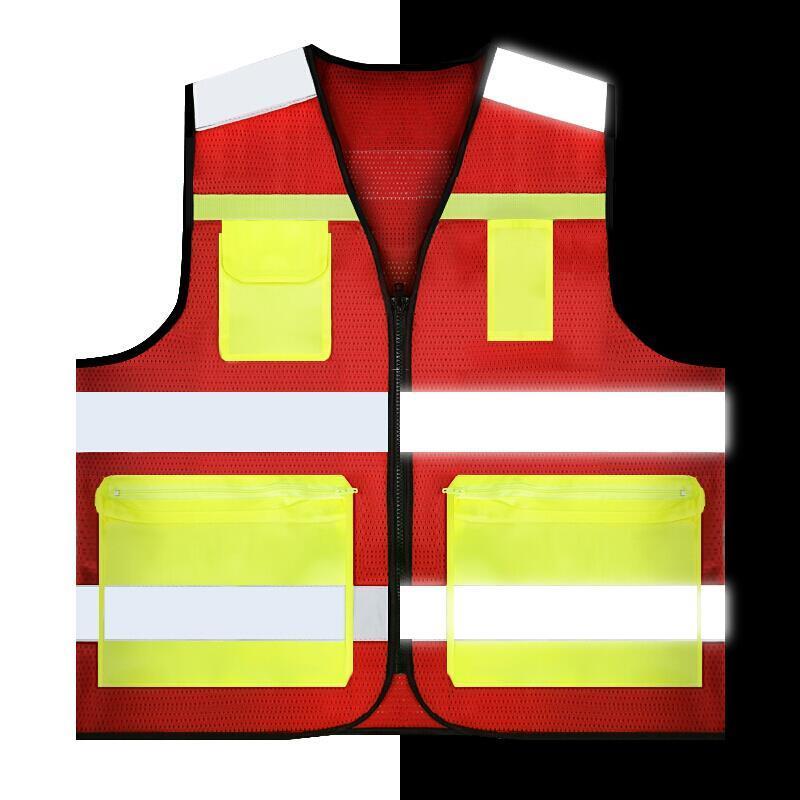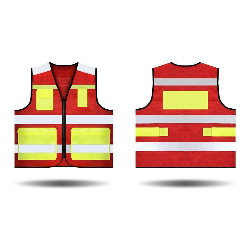 V-Neck Safety Vests with 4 Pockets Mesh Breathable Reflective Vest Construction Vehicle Reflective Clothing Traffic Security Clothing - Red