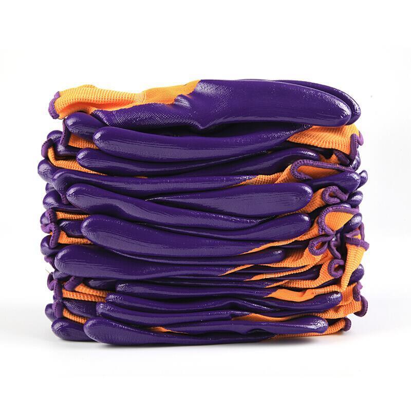 Nitrile Semi Dipped Rubber Gloves Wear Resistant Oil Resistant Acid And Alkali Resistant Protective Gloves Working Labor Protection Gloves Purple 12 Pairs M Size