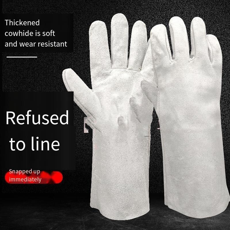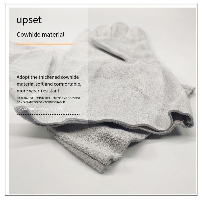 Weld Protection Special Leather Gloves Wear-Resistant Soft Leather Anti-Scald Upgrade Strengthened Leather Gloves [ Long ] One Pair